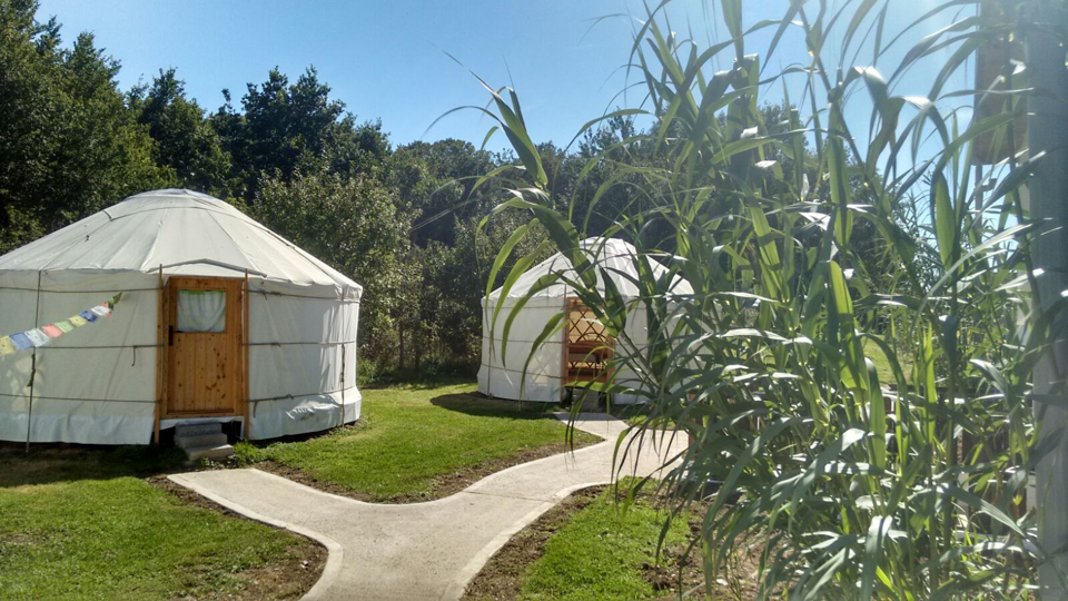 We have five yurts, each with a woodburning stove and two single beds, plus space for up to three children on foutons/camping beds.