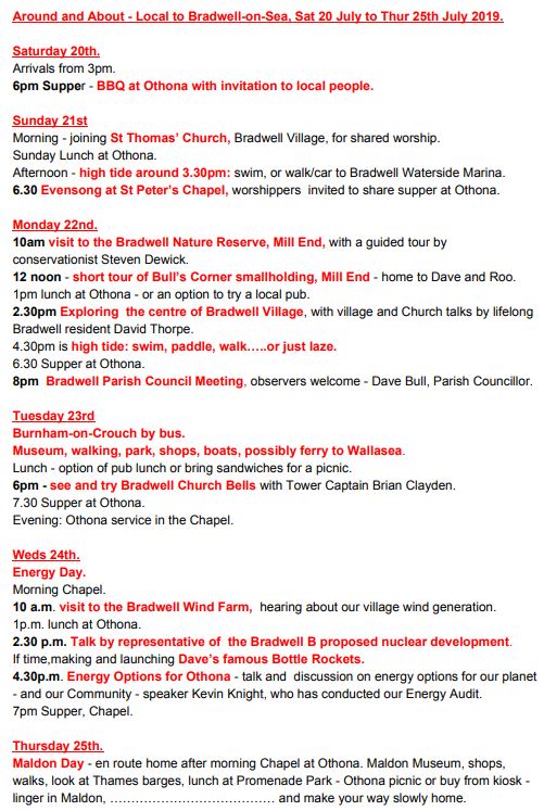 The itinenary for this week (20-25th July) of local based activties run by Roo and Dave Bull is available on our website. Included in the week are trips to Maldon, Burnham-on-Crouch and a day focusing on energy plus a chance to have a go at the very popular bottle rocket launching.