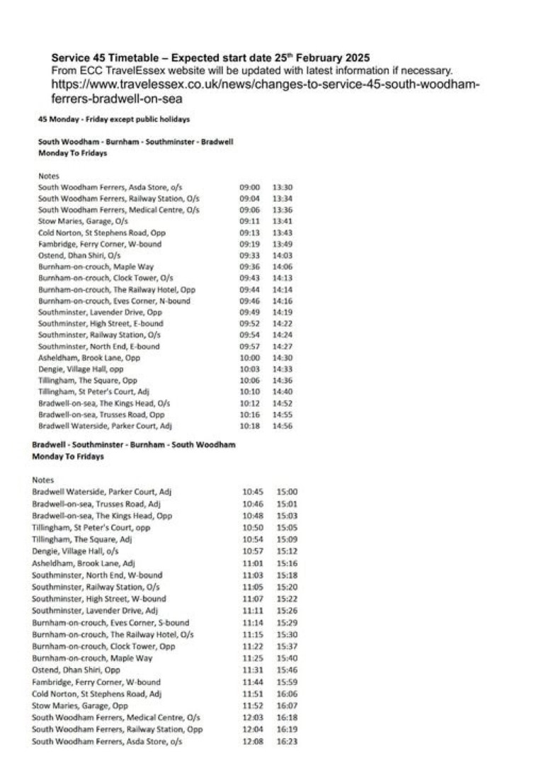 Southminster to Bradwell-on-Sea (for train connections from London).- 45 Timetable